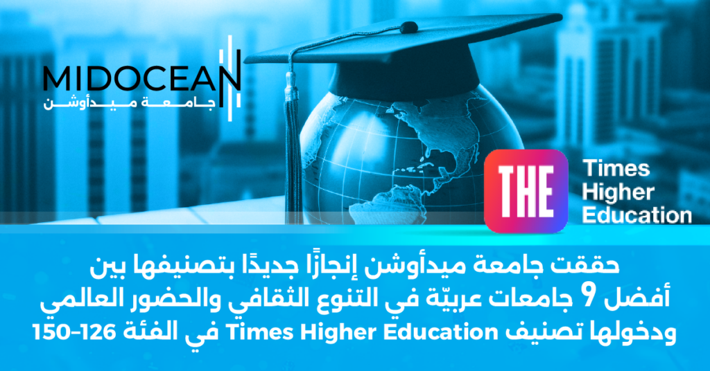 حققت جامعة ميدأوشن إنجازًا جديدًا بتصنيفها بين أفضل 9 جامعات عربيّة في التنوع الثقافي والحضور العالمي ودخولها تصنيف Times Higher Education في الفئة 126–150